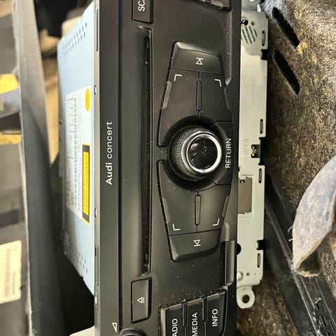 Audi Concert autosoitin. Väri musta. Sopii Audi-malleihin, joissa on Concert-järjestelmä. Laitteessa etupaneelissa painikkeet radion, CD-soittimen ja äänenvoimakkuuden säätöön sekä näytön vieressä toimintonäppäimet. Soveltuu auton alkuperäisen soittimen korvaajaksi tai varaosaksi yhteensopivaan Audi-ajoneuvoon.