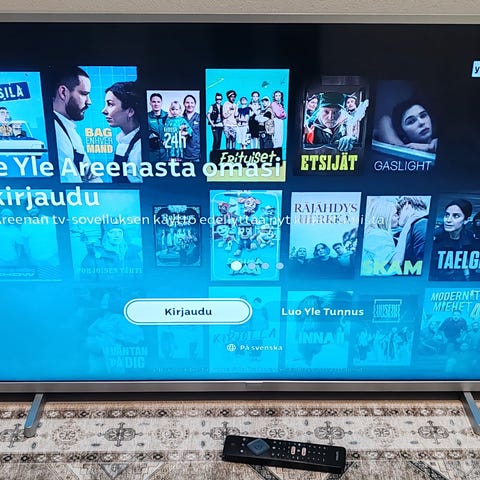 Ambilight kahdella sivulla. Hyvä kuvanlaatu. Chromecast mukaan, koska päivitykset päättynyt. Nouto viikolla 9 viimeistään.