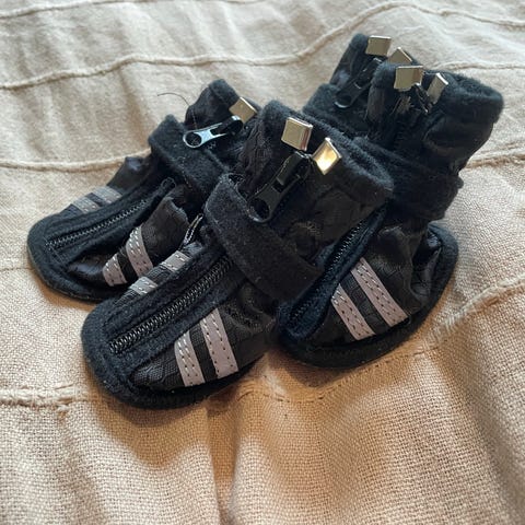 Myydään lähes käyttämättömät, isoiksi todetut koiran tossut.