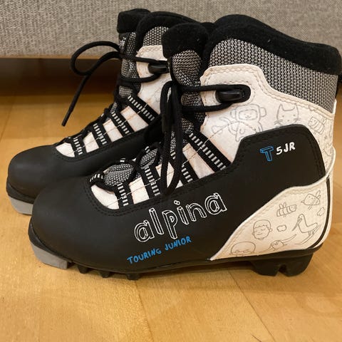 Alpina TR12 JR hiihtomonot juniorikoossa 34. Väri musta–valkoinen punaisin yksityiskohdin. Monoissa vetoketjukiinnitys päällä ja nauhat sisäpuolella. Soveltuvat lasten maastohiihtoon NNN- siteelle. Koko ja malli näkyvät kengän sisämerkinnässä: size 34, model TR12 JR.