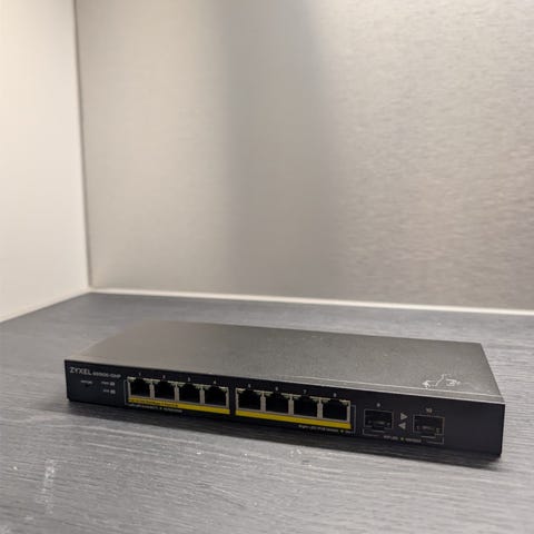 Myydään toimiva Zyxel GS1900-8 -hallittava gigabit-kytkin.