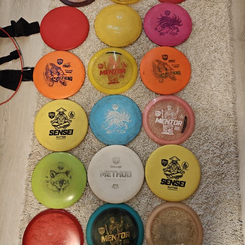 Frisbeegolfpaketti, jossa useita eri valmistajien kiekkoja. Kiekkoihin kuuluu muun muassa Prodiscus Acom -midrange-kiekko, Prodigy Ace Line M Model S -midrange-kiekko, Prodigy Ace Line P Model S -putteri- ja lähestymiskiekko sekä Discmania Evolution Essence -fairway driver. Kiekot ovat eri väreissä (mm. oranssi, vihreä, sininen, valkoinen) ja muovimateriaalia. Sopivat frisbeegolfin pelaamiseen eri heittoihin, kuten avauksiin, lähestymisiin ja putteihin. Paketti sisältää yhteensä viisi kiekkoa kuvien mukaisesti.