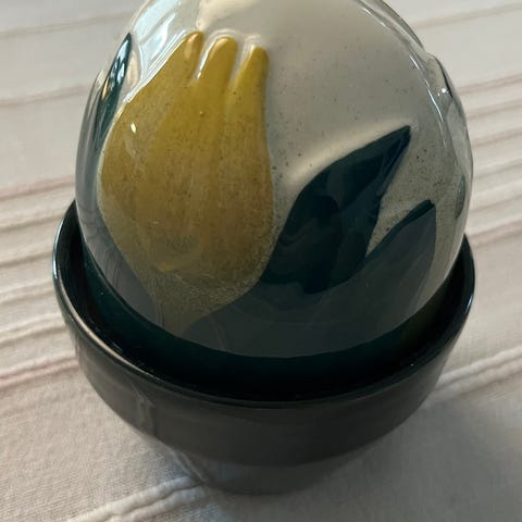 Käyttötarkoitus: Koriste-esine, jota voidaan käyttää pienten esineiden tai korujen säilytykseen