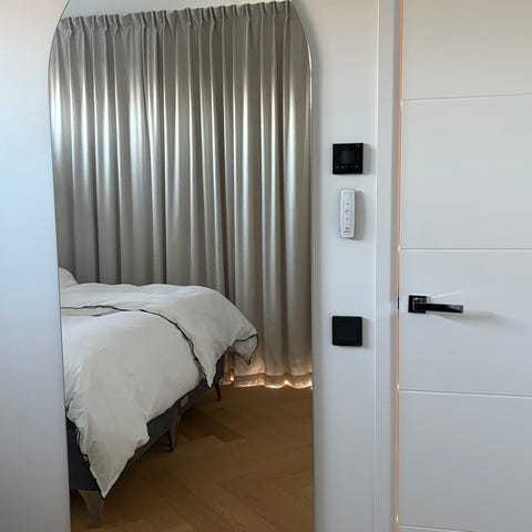 Iso kahdesta osasta koostuva kaaripeili hiukan ruskeaan taittavaa pelilasia.