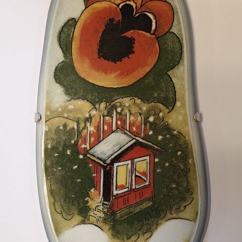 Arabian Heljä Liukko-Sundströmin suunnittelema kieloaiheinen seinälaatta.