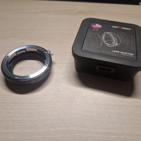 Adapteri on hyvässä kunnossa, täysin toimiva ja pidetty siististi. Ei kolhuja, ei löysyyttä, ei kontaktihäiriöitä. Kiinnittyy napakasti sekä runkoon että objektiiviin.