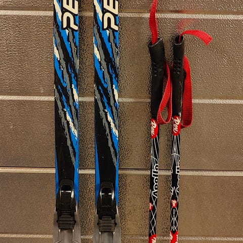 Peltonen sukset 140, sauvat + Alpina monot 35