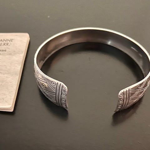 Vöyrin rannekoru. Kalevala Koru. 925 sterlinghopeaa. N. 25 vuotta vanha. Halkaisija n. 5,5 cm.