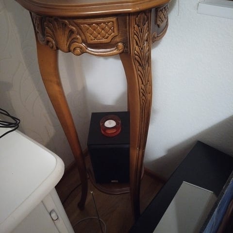 Pöydän halkaisija on noin 30 cm.
