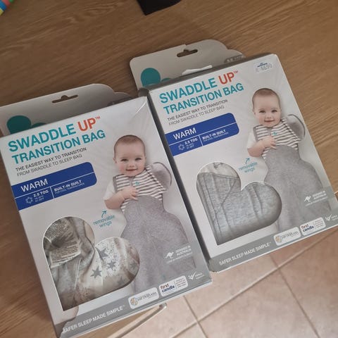 Love to dream Swaddle up unipussit / kapalopussit. 2 x S-koko ja 2 x M-koko. Hyvässä kunnossa. Pesty hajusteettomalla pesuaineella. Toisessa M-kokoisessa pientä tahraa reunuksessa (viimeinen kuva).