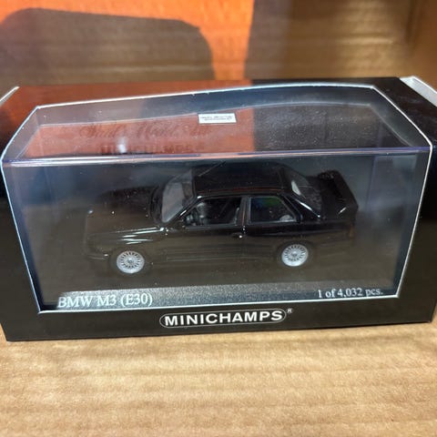 Minichamps BMW M3 (E30) pienoismalli. Toimitetaan alkuperäisessä Minichamps-laatikossa, jossa läpinäkyvä ikkuna mallin katselua varten. Sopii vitriiniin, kokoelmaan tai koristeeksi autoaiheisesta pienoismalleista kiinnostuneelle.