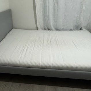 Myyn sen muuton vuoksi. Se on käytännössä uusi, ostin sen neljä kuukautta sitten, se on erittäin siisti eikä siinä ole likaa. Se on oikean kokoinen 140x200. Patjoihin kuuluu myös