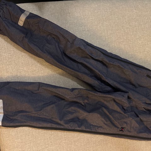 Sivuilla koko pitkät vetoketjut. Ehjät ja hyväkuntoiset housut.