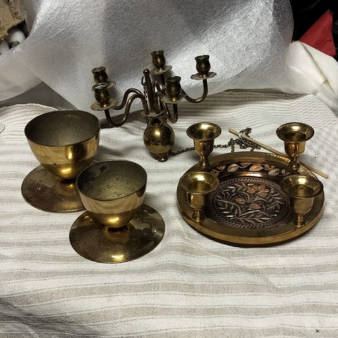 Oyoy käyttämätön messinki kynttiläjalka x2. Näissä oli pientä patinaa jo ostaessa. Näihin menee ohuempi kynttilä