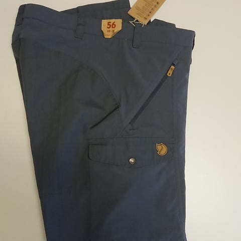 Fjällräven miesten ulkoiluhousut, koko 56 (pitkä lahje). Väri tummanharmaa. Housuissa on napillinen vyötärö, vetoketjusepalus ja useita taskuja, muun muassa suuret läpälliset reisitaskut. Materiaalina kestävä ulkoilukangas, joka soveltuu retkeilyyn ja muuhun ulkoiluun. Merkintä: "Men’s Long".