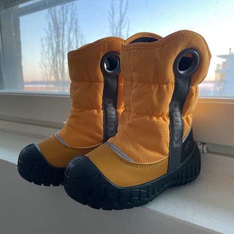 ”Lämpimät, vedenpitävät talvisaappaat on taaperon itse helppo vetää jalkaan. Erittäin kevyet ja mukavat