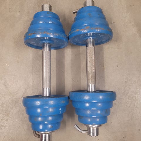 Nyt olisi hyvät käsipainot 2×15 kg,valurautaa.