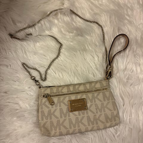 Myydään erittäin siisti, vähälle käytölle jäänyt Michael Korsin valkoinen pikkulaukku. Saa tarjota!