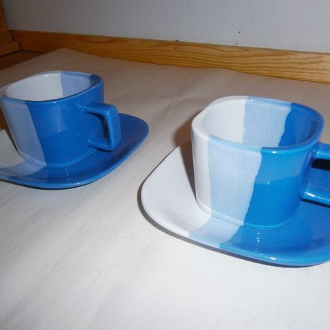 Kaksi kuppia ja aluslautasta.