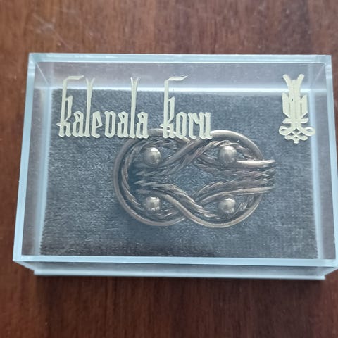 Rauni Hevonojan suunnittelema rintakoru pronssia. Leveys 5,8 cm ja korkeus 3 cm. Neula on mielestäni hiukan kaarella - en tiedä kuuluuko olla.