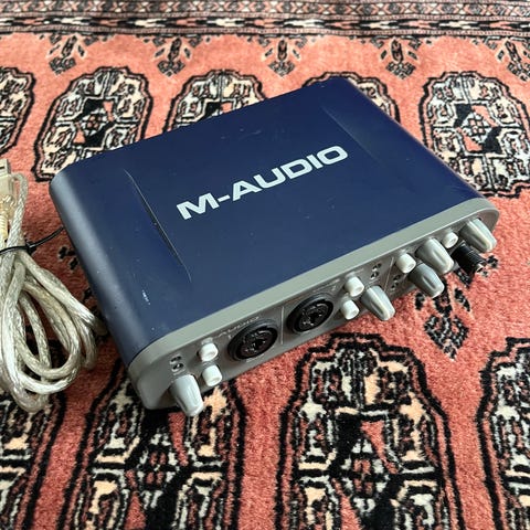 Muutama kuukaus sitten ostettu thomann verkkokaupasta motu m2 äänikortti, toimii täydellisesti ja käytetty shure sm7b + dt 990 pro kanssa.