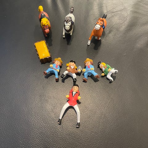 Myynnissä 11kpl hevos figuuria. Kahdesta valkoisen värisestä en ole varma kuuluvatko tähän Pony in my pocket sarjaan, mutta niissä on myös pohjassa sama leima 1994 M.E.G China. Kaikki siis kuitenkin ysäriltä. Nouto onnistuu myös.