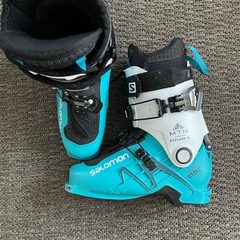 Salomonin shift Pro 80t 23/23.5 naisten laskettelumonot. Sopii myös pinnisiteisiin. Kerran mäessä käyneet, voi vielä uunittaa.