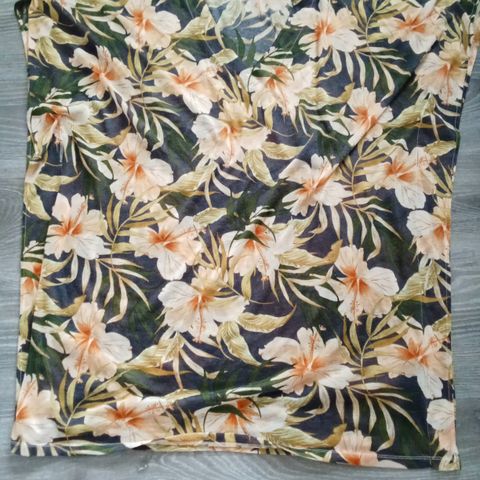 STI:n tunika, koko XL. Naisten vaate, valmistettu kevyestä polyesteristä, jossa on kukkakuviointi. Pituus n. 71cm, kai-kai n.110cm. Laskeutuu kauniisti. Vuori.