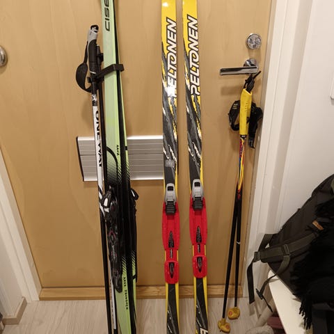 Peltonen Mirage lasten siniset maastohiihtosukset siteineen + sauvat ja Salomonin harmaa‑punaiset monot sekä hiihtosauvat. Suksissa on perinteisen tyylin sidejärjestelmä. Sauvojen pituus n.108 cm (mitta kuva). Suksien kärjet ovat kuluneita ja niissä on selviä käytön jälkiä. Molot siistit, koko näkyy lapussa. Setti soveltuu lapselle tai nuorelle perinteiseen maastohiihtoon. Vain nouto!