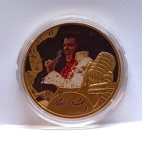 Virallinen Elvis Presley kultaraha 9k 8gr ja hopearaha sekä kullatut rahat