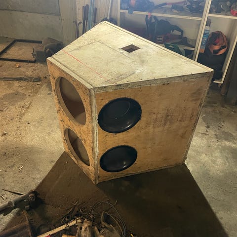 Kotelo: Käsintehty koivuvanerista ja sen näkee mutta ajaa asiansa ja on tiivis/tukeva, viri noin 32hz