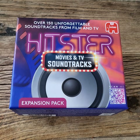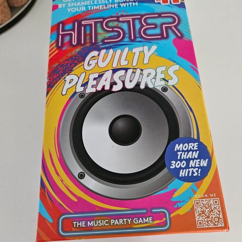 Hitster musiikkivisa lautapeli. Pelissä on kortteja ja QR-koodi, jonka avulla kuunnellaan kappaleita ja järjestetään ne aikajanalle. Sopii useamman pelaajan seurapeliksi, jossa testataan musiikkitietoutta ja kappaleiden julkaisuvuosia.