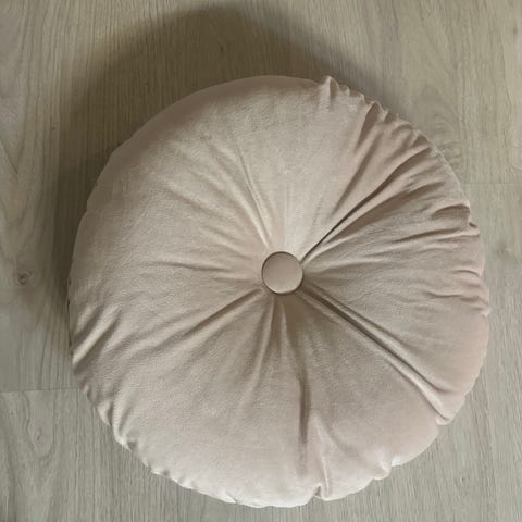 2kpl pyöreä koristetyyny keltaisena. Samettinen kangas ja keskellä nappi, joka muotoilee tyynyn kevyesti laskostetuksi. Sopii käytettäväksi esimerkiksi sohvatyynynä.