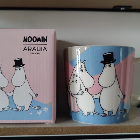 Myydään 0,3 litran Kotona viimein muumimuki. Tätä 0,3 litran versiota myytiin vain Japanissa vuonna 2025. Täysin uusi, mukana pakkaus, tarrat ja kaikki.