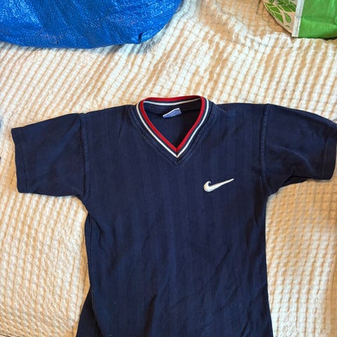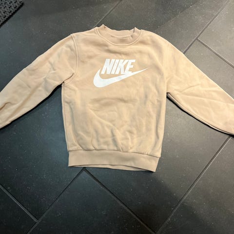 Nike lasten collegepaita, koko 116. Väri valkoinen ja edessä useita sinisiä Nike-logoja. Materiaali puuvillaa. Unisex-malli, jossa pitkät hihat ja pyöreä pääntie. Sopii arkeen ja vapaa-aikaan lapselle, jonka vaatekoko on noin 116 cm.