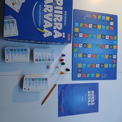 Pelissä on 560 korttia, pelilauta, tiimalasi ja aivojen muotoiset pelinapit.