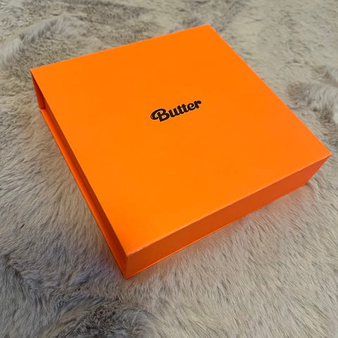 BTS Butter albumi. Sisältää kaiken alkuperäisen. Muutama tarra käytetty.
