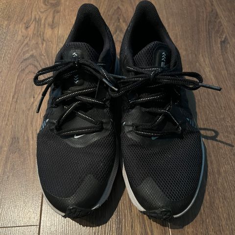 Nike juoksukengät pojille, koko 36. Väri musta valkoisilla yksityiskohdilla. Päällinen verkkomaista tekstiiliä ja nauhakiinnitys. Paksu vaahtomuovipohja tarjoaa pehmustetun askelluksen ja kumipohja kuvioinnilla parantaa pitoa. Sopivat juoksuun, liikuntatunneille ja vapaa-aikaan.