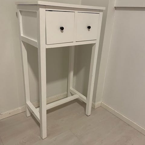 Kuvan yöpöytä / sivupöytä pienellä vetolaatikolla.