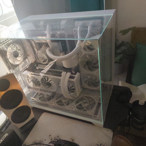 Kone siis toimii kuten pitää mutta kotelon etu-tuulettimet lopettavat toimimisen hetken käytössä ollessa sekä alkaa haisemaan hieman palanut kun valot katkeavat, kotelon tuulettimen virtajohdot ovat tod näk rikki.