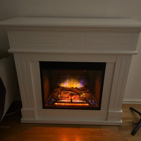 Valkoinen sähkötakka, jossa koristeellinen klassistyylinen takkakehys. Takassa on sisäänrakennettu sähköinen liekkiefekti ja hehkuvat tekopuut. Sopii sisäkäyttöön esimerkiksi olohuoneeseen lisälämmönlähteeksi ja tunnelmavaloksi. Takka on lattialle sijoitettava ja sen päällä on tasainen pinta, jota voi käyttää esimerkiksi kasvin tai muiden pienten esineiden alustana.