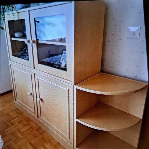 Kaappi ostettu 90-luvulla, joten ikäisekseen on siistikuntoinen. Kaappi kahdessa osassa.
