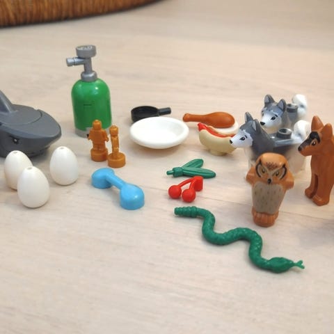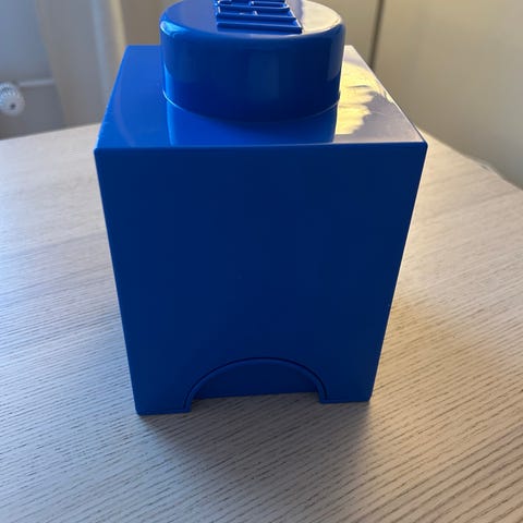 Tässä ollut alunperin Lego Uno -palikoita. Kalan mallinen rasia on muovia ja sininen osa aukeaa. Sininen osa irrotettavissa