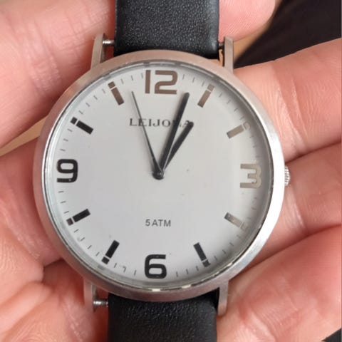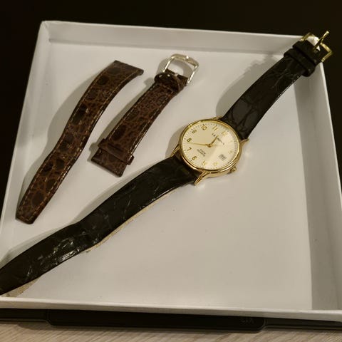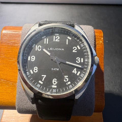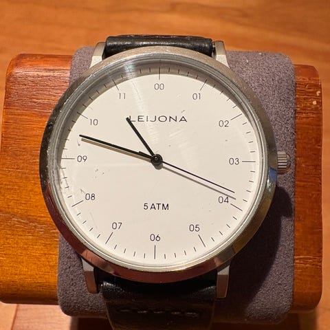 Myyntiin tyylikäs ja ajaton Leijona 5020-2148 rannekello. Selkeä valkoinen taulu, kohokuvioitu keskiosa sekä numerot 12 ja 6 tekevät kellosta klassisen ja helposti luettavan. Sopii niin arkeen kuin siistimpäänkin käyttöön. Paristo vaihdettu juuri uuteen.