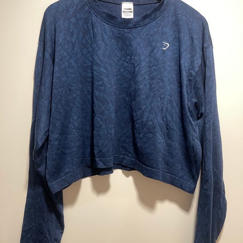 Hyväkuntoinen Gymshark treenipaita. Koko M, mitat kaikai 42 cm, olkahelma 35 cm ja hiha kainalosta 54 cm. Nouto Oulu tai postit lisätään.