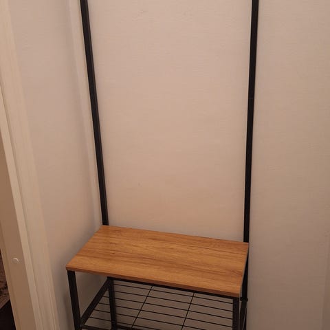 Hakusanat: huonekalu, huonekalut, naulakko, ripustin, vaatenaulakko, naulakot, vaateripustin, vaate hattuhylly, koukut, käytetyt huonekalut, sisustus, vaatteet, valkoinen