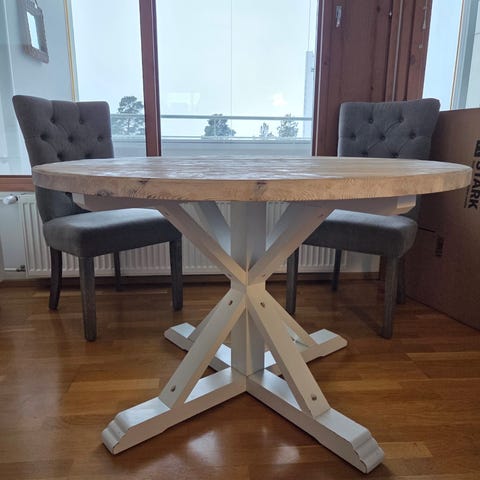Pöytä on hyvässä kunnossa ilman näkyviä vaurioita.