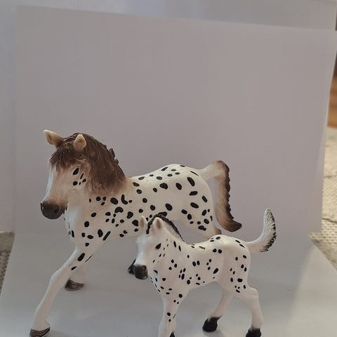 Kaksi Schleich hevosta ja esteet. Ruunassa hieman kulumajälkeä toisella puolella. Hinta koko setti.