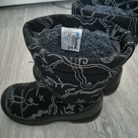 Ei mitään käytön jälkeä, karvavuori on pörheä. Nämä eivät olleet monta kertaa jalassa, kun piti jo hankkia isommat.