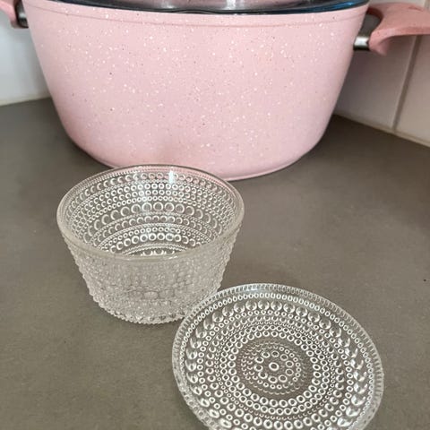 Iittalan Kastehelmi -tuikku, värissä vaalea pinkki. Tämän värin valmistus lopetettu.
